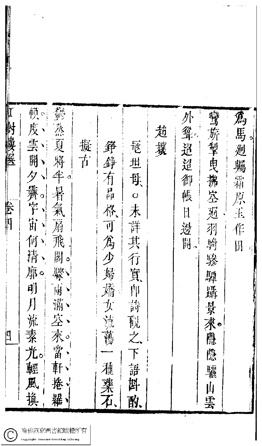 | (PRINT FRIENDLY VERSION) 歷朝名媛詩詞﹕十二卷(清陸昶輯)。清乾隆三十八年(1773)紅樹樓刻本 ![]() Page : 4.4a | click for larger image | Back |