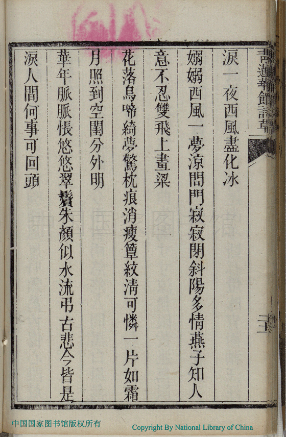 | (PRINT FRIENDLY VERSION) 青蓮華館詩草:一卷(清王曇撰)。清光緒十九年(1893)刻本 ![]() Page : 詩草.21b | click for larger image | 青蓮華館詩草:一卷(清王曇撰)。清光緒十九年(1893)刻本![]() Page : 詩草.21a | click for larger image | 青蓮華館詩草:一卷(清王曇撰)。清光緒十九年(1893)刻本![]() Page : 詩草.20b | click for larger image | 青蓮華館詩草:一卷(清王曇撰)。清光緒十九年(1893)刻本![]() Page : 詩草.20a | click for larger image | Back |