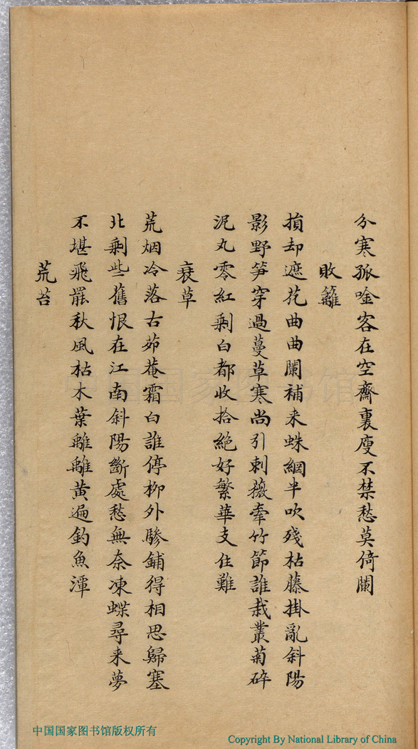 | (PRINT FRIENDLY VERSION) 出凡遺稿:一卷(清高韞珍著)。清抄本 ![]() Page : 遺稿.8b | click for larger image | 出凡遺稿:一卷(清高韞珍著)。清抄本![]() Page : 遺稿.8a | click for larger image | Back |