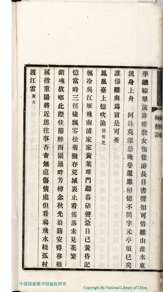 | (PRINT FRIENDLY VERSION) 崦樓遺稿:二卷(清沈鵲應撰)。民國間(1912-1949)鉛印本 ![]() Page : 崦樓詞.9a | click for larger image | 崦樓遺稿:二卷(清沈鵲應撰)。民國間(1912-1949)鉛印本![]() Page : 崦樓詞.8b | click for larger image | Back |