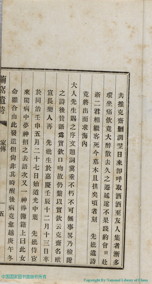 | (PRINT FRIENDLY VERSION) 繭窩遺詩:三卷(清張印撰)。民國三年(1914) 利福公司鉛印本 ![]() Page : 林母張夫人家傳.5b | click for larger image | 繭窩遺詩:三卷(清張印撰)。民國三年(1914) 利福公司鉛印本![]() Page : 林母張夫人家傳.5a | click for larger image | 繭窩遺詩:三卷(清張印撰)。民國三年(1914) 利福公司鉛印本![]() Page : 林母張夫人家傳.4b | click for larger image | Back |