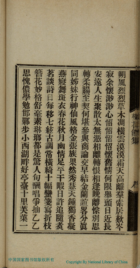 | (PRINT FRIENDLY VERSION) 梅花館詩集:一卷;附詩餘(清汪韻梅撰)。清光緒三十四年(1908)排印本 ![]() Page : 詩集.9a | click for larger image | 梅花館詩集:一卷;附詩餘(清汪韻梅撰)。清光緒三十四年(1908)排印本![]() Page : 詩集.8b | click for larger image | 梅花館詩集:一卷;附詩餘(清汪韻梅撰)。清光緒三十四年(1908)排印本![]() Page : 詩集.8a | click for larger image | Back |