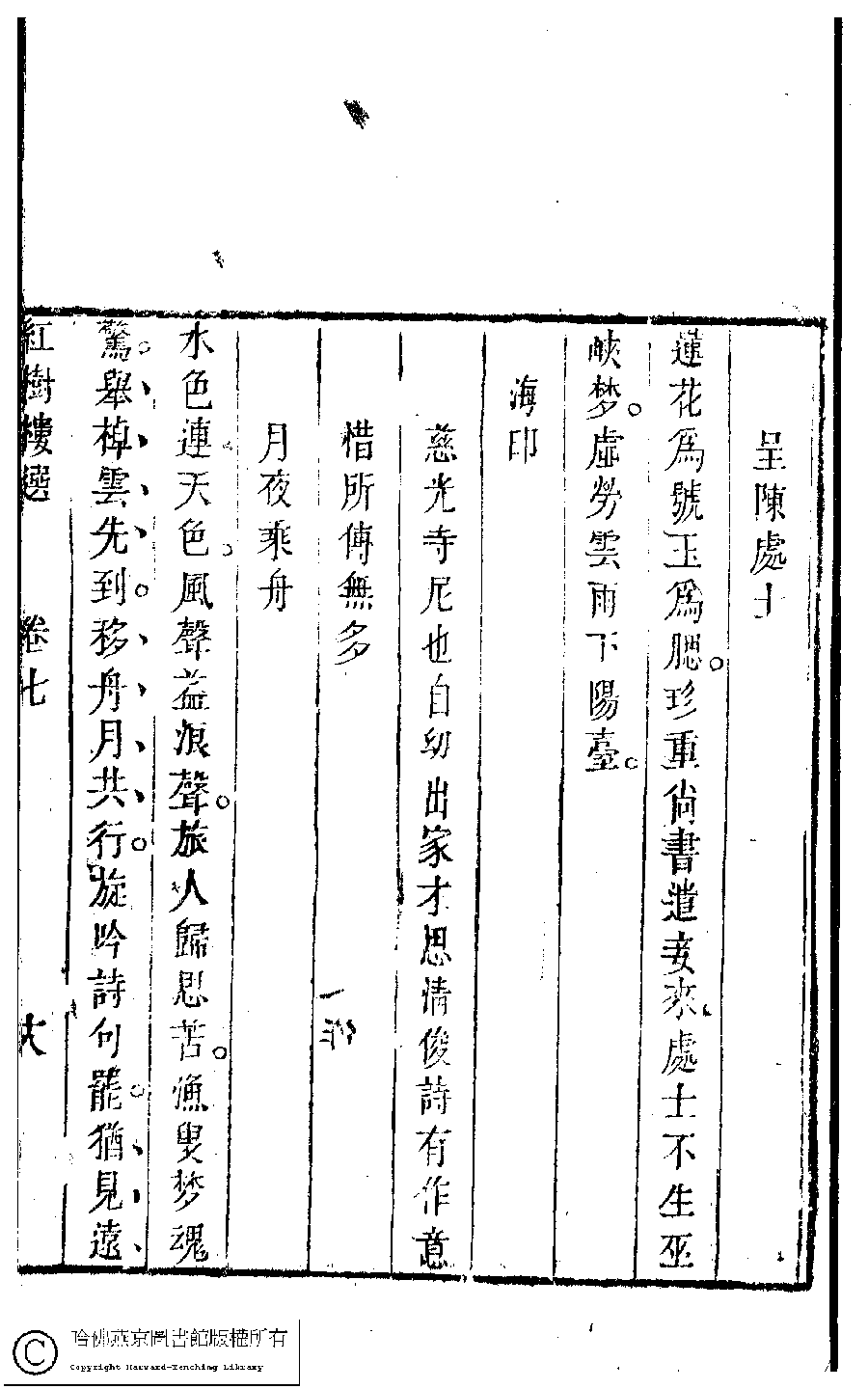| (PRINT FRIENDLY VERSION) 歷朝名媛詩詞﹕十二卷(清陸昶輯)。清乾隆三十八年(1773)紅樹樓刻本 ![]() Page : 7.18a | click for larger image | Back |