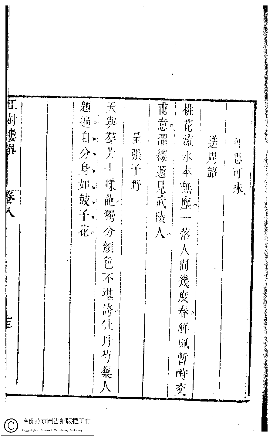 | (PRINT FRIENDLY VERSION) 歷朝名媛詩詞﹕十二卷(清陸昶輯)。清乾隆三十八年(1773)紅樹樓刻本 ![]() Page : 8.13a | click for larger image | 歷朝名媛詩詞﹕十二卷(清陸昶輯)。清乾隆三十八年(1773)紅樹樓刻本![]() Page : 8.12b | click for larger image | Back |