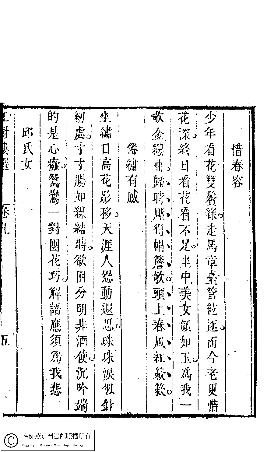 | (PRINT FRIENDLY VERSION) 歷朝名媛詩詞﹕十二卷(清陸昶輯)。清乾隆三十八年(1773)紅樹樓刻本 ![]() Page : 9.5b | click for larger image | 歷朝名媛詩詞﹕十二卷(清陸昶輯)。清乾隆三十八年(1773)紅樹樓刻本![]() Page : 9.5a | click for larger image | Back |