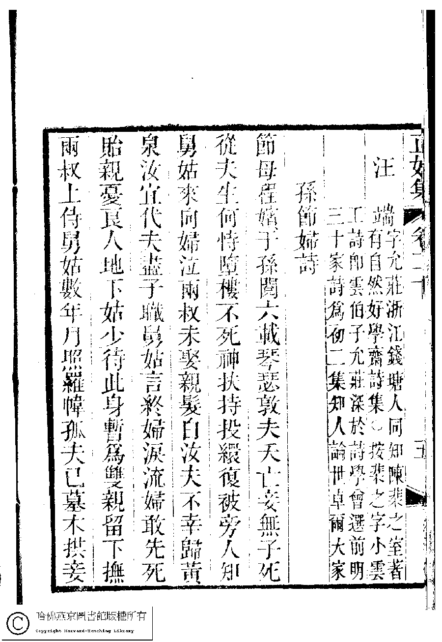 | (PRINT FRIENDLY VERSION) 國朝閨秀正始集﹕二十卷﹐附錄﹕一卷﹐補遺﹕一卷﹐又附題詞﹕一卷(清惲珠輯)。清道光十一年(1831)紅香館刻本。 ![]() Page : 20.6a | click for larger image | 國朝閨秀正始集﹕二十卷﹐附錄﹕一卷﹐補遺﹕一卷﹐又附題詞﹕一卷(清惲珠輯)。清道光十一年(1831)紅香館刻本。![]() Page : 20.5b | click for larger image | Back |
