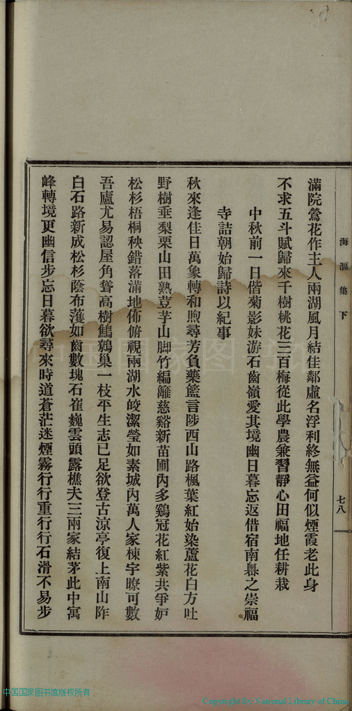 Poem [Zhong qiu qian yi ri xie ju ying you Shi chi ai qi jing you ri mu wang fan jie su Nan ao zhi Chong fu si jie chao shi gui shi yi ji sh]