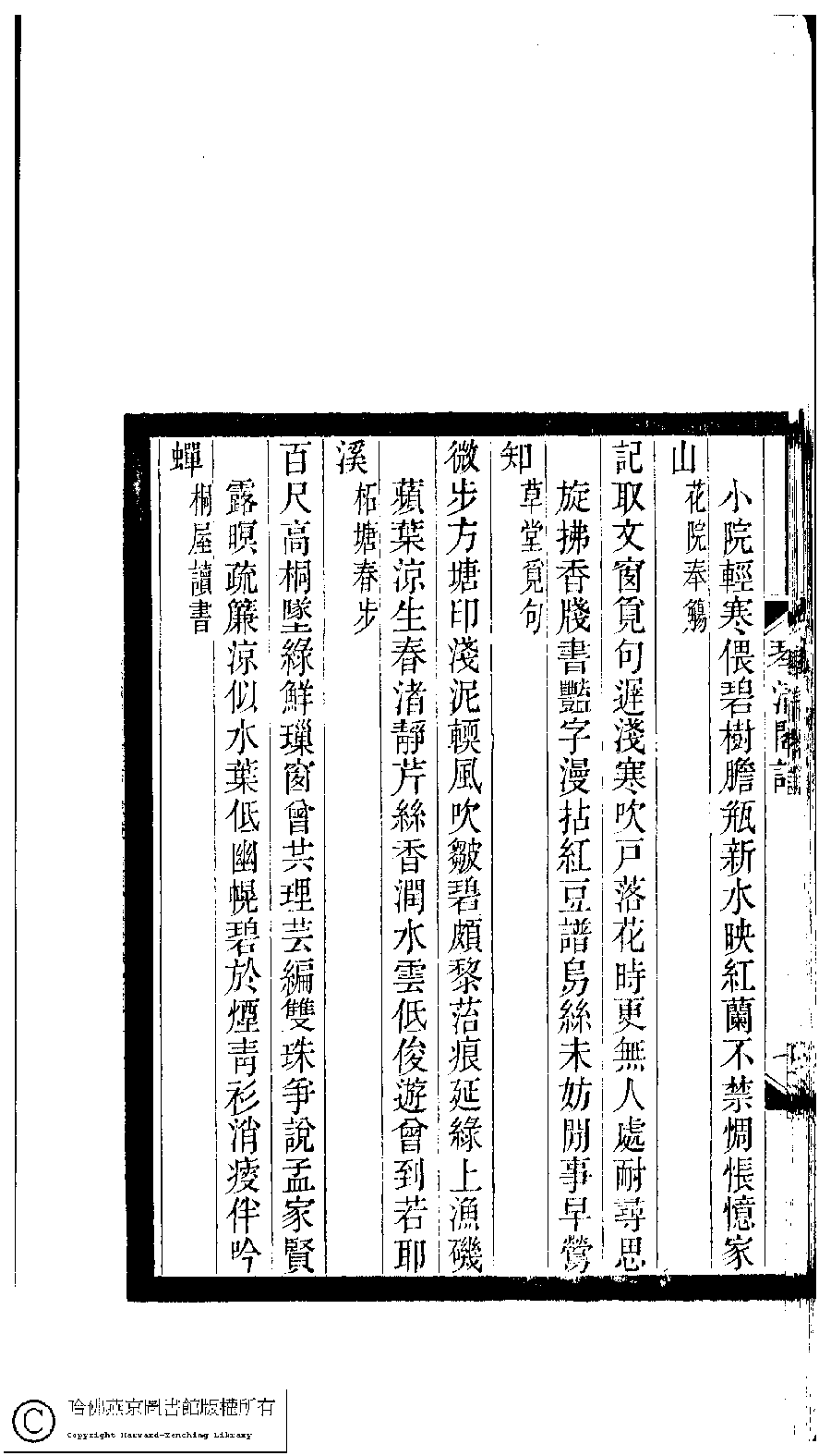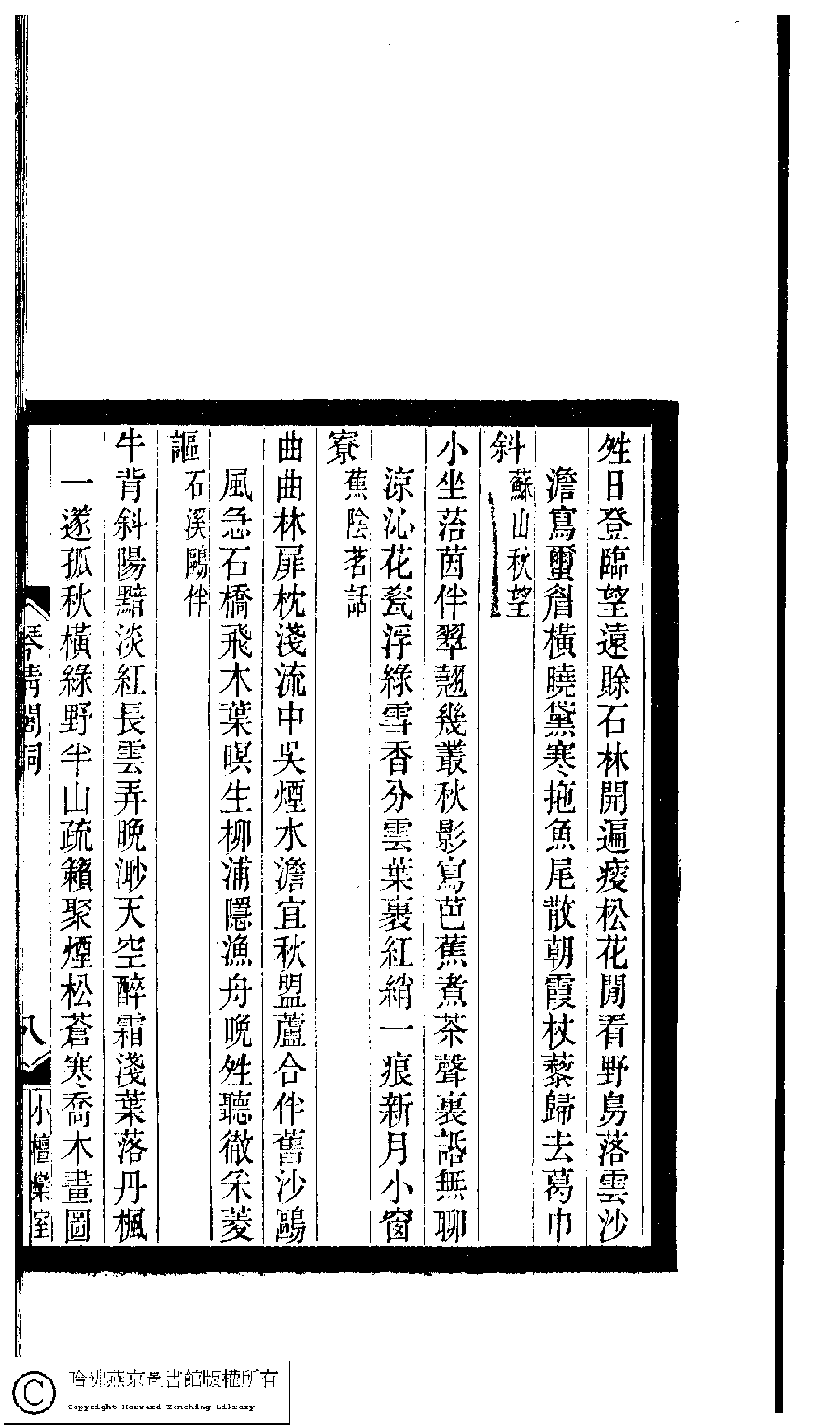 | (PRINT FRIENDLY VERSION) 小檀欒室彙刻閨秀詞﹕十集一百種一百卷(清徐乃昌輯) : 琴清閣詞﹕一卷。清光緒二十二年(1896)南陵徐氏刻本。 ![]() Page : 琴清閣詞.8b | click for larger image | 小檀欒室彙刻閨秀詞﹕十集一百種一百卷(清徐乃昌輯) : 琴清閣詞﹕一卷。清光緒二十二年(1896)南陵徐氏刻本。![]() Page : 琴清閣詞.8a | click for larger image | 小檀欒室彙刻閨秀詞﹕十集一百種一百卷(清徐乃昌輯) : 琴清閣詞﹕一卷。清光緒二十二年(1896)南陵徐氏刻本。![]() Page : 琴清閣詞.7b | click for larger image | 小檀欒室彙刻閨秀詞﹕十集一百種一百卷(清徐乃昌輯) : 琴清閣詞﹕一卷。清光緒二十二年(1896)南陵徐氏刻本。![]() Page : 琴清閣詞.7a | click for larger image | Back |