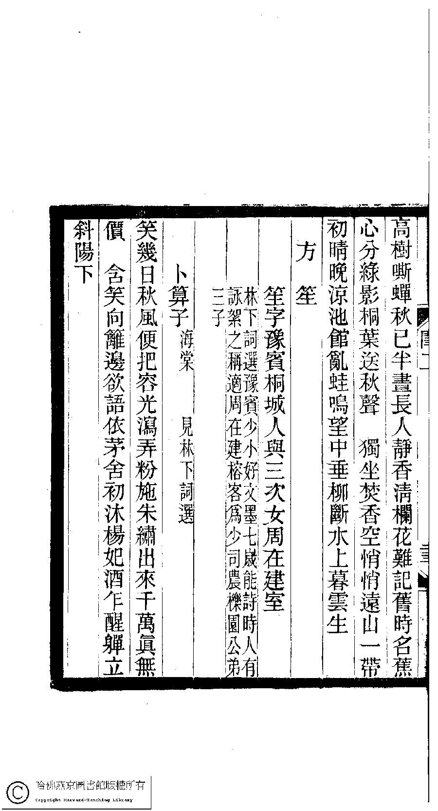 | (PRINT FRIENDLY VERSION) 閨秀詞鈔﹕十六卷(清徐乃昌輯)。清宣統元年(1909)小檀欒室刻本。 ![]() Page : 2.23b | click for larger image | Back |