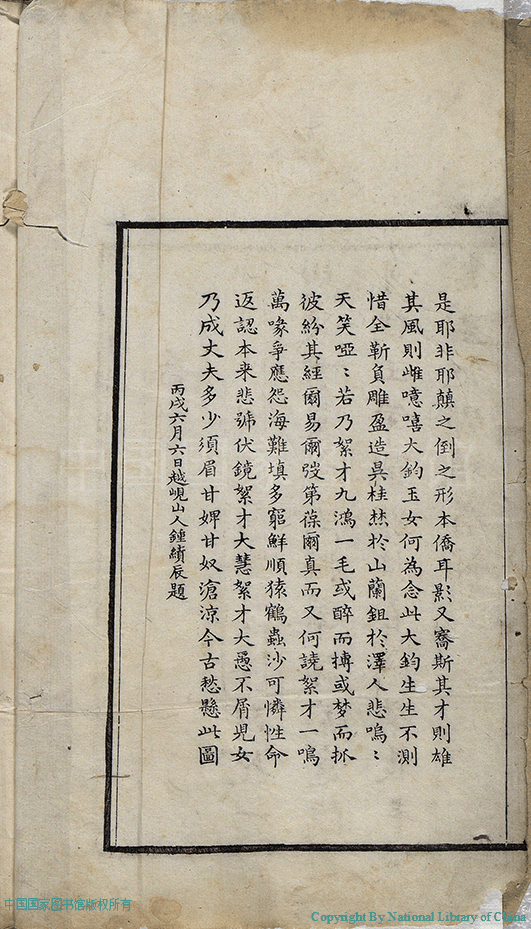 | (PRINT FRIENDLY VERSION) 喬影:一卷(清吳藻撰)。清(1820-1911)刻本 ![]() Page : 題詞 | click for larger image | Back |