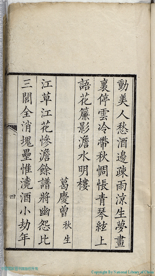 | (PRINT FRIENDLY VERSION) 喬影:一卷(清吳藻撰)。清(1820-1911)刻本 ![]() Page : 題辭.4a | click for larger image | 喬影:一卷(清吳藻撰)。清(1820-1911)刻本![]() Page : 題辭.3b | click for larger image | Back |