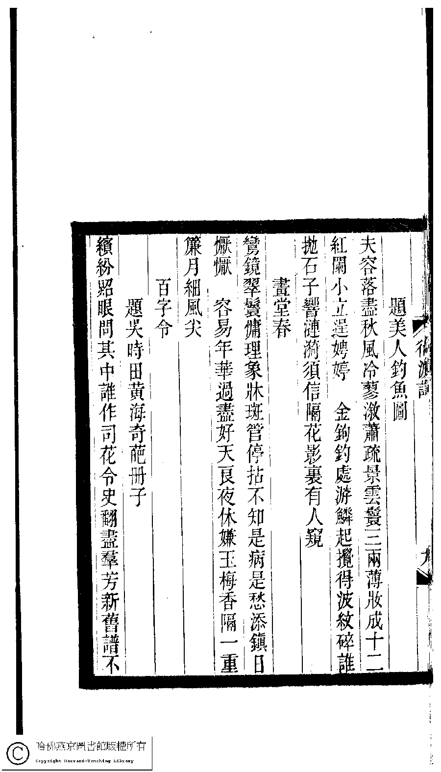 | (PRINT FRIENDLY VERSION) 小檀欒室彙刻閨秀詞﹕十集一百種一百卷(清徐乃昌輯) : 衍波詞﹕一卷。清光緒二十二年(1896)南陵徐氏刻本。 ![]() Page : 衍波詞.9b | click for larger image | Back |