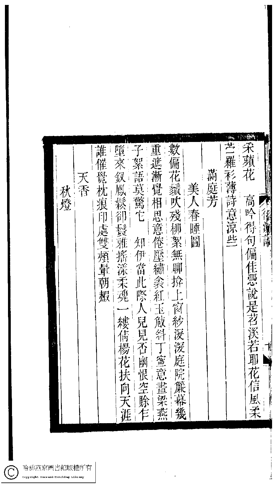 | (PRINT FRIENDLY VERSION) 小檀欒室彙刻閨秀詞﹕十集一百種一百卷(清徐乃昌輯) : 衍波詞﹕一卷。清光緒二十二年(1896)南陵徐氏刻本。 ![]() Page : 衍波詞.11a | click for larger image | 小檀欒室彙刻閨秀詞﹕十集一百種一百卷(清徐乃昌輯) : 衍波詞﹕一卷。清光緒二十二年(1896)南陵徐氏刻本。![]() Page : 衍波詞.10b | click for larger image | Back |