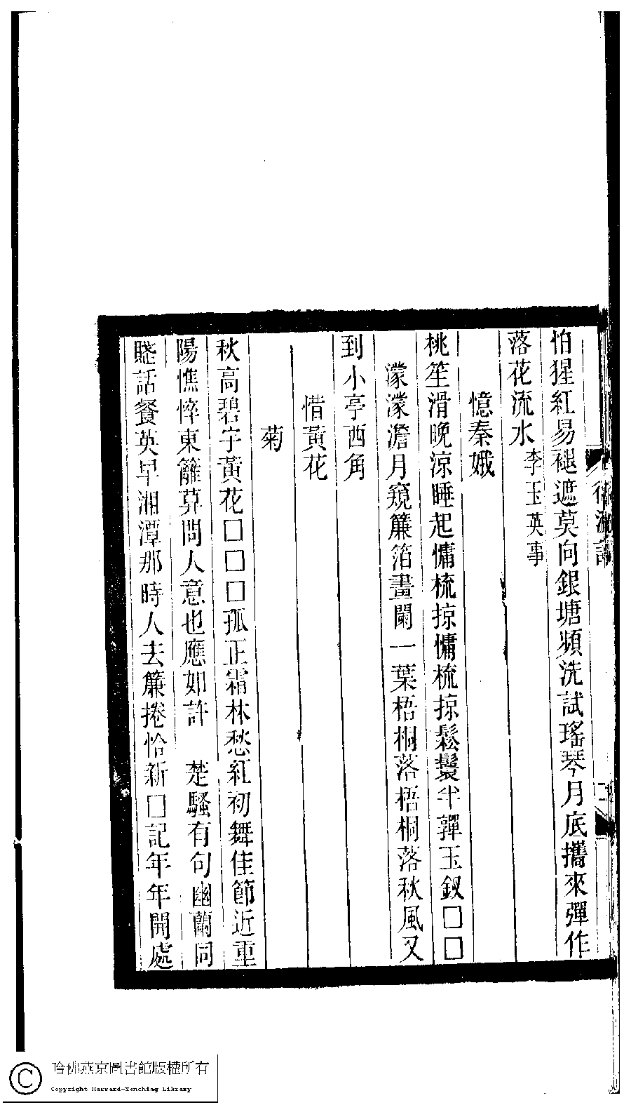 | Appears in: Xiao tan luan shi hui ke gui xiu ci: 10 ji 100 zhong 100 juan (edited by Xu Naichang, Qing dynasty): Yan bo ci: 1 juan |