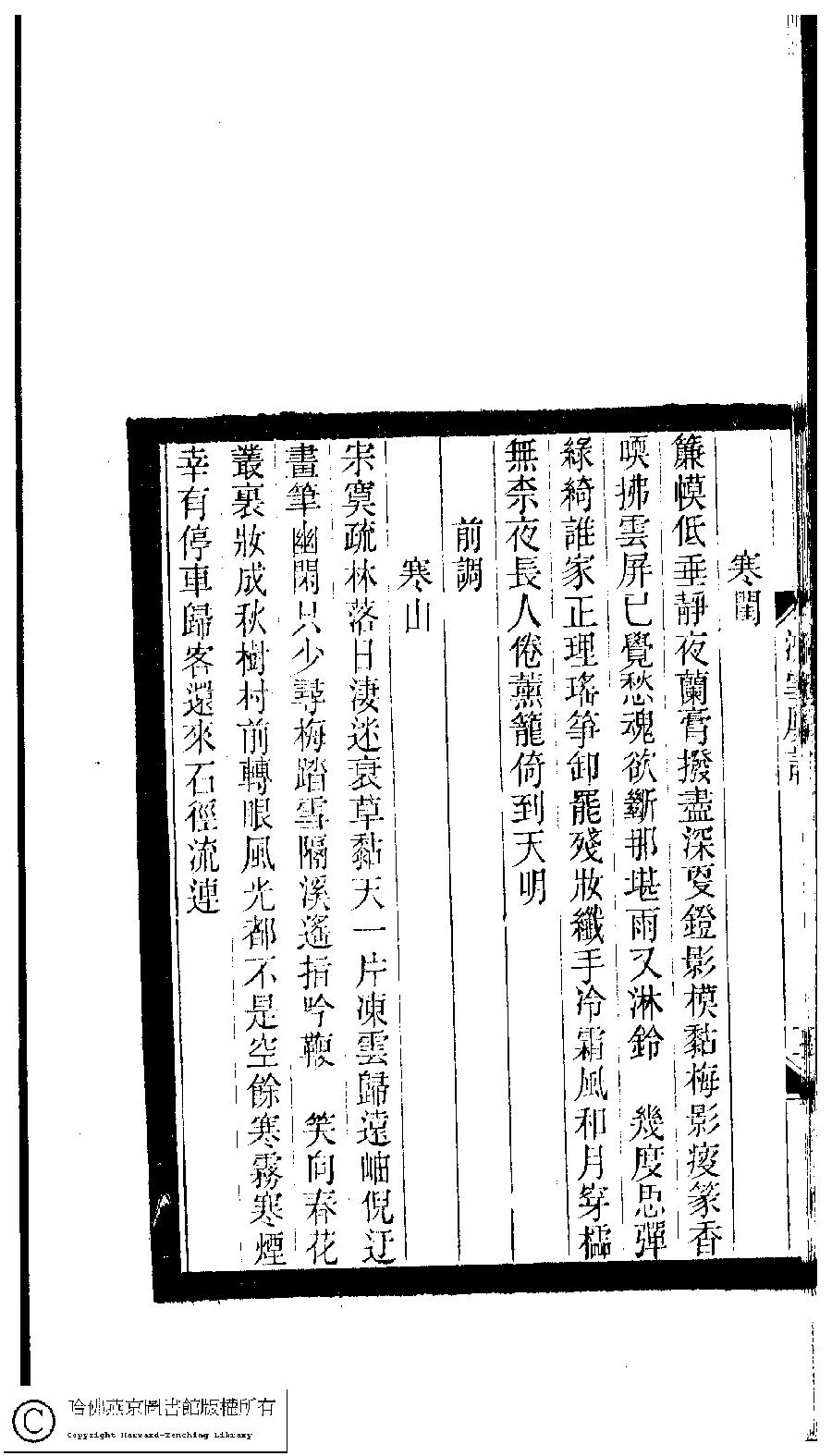 | Appears in: Xiao tan luan shi hui ke gui xiu ci: 10 ji 100 zhong 100 juan (edited by Xu Naichang, Qing dynasty): Hong xue lou ci: 1 juan |