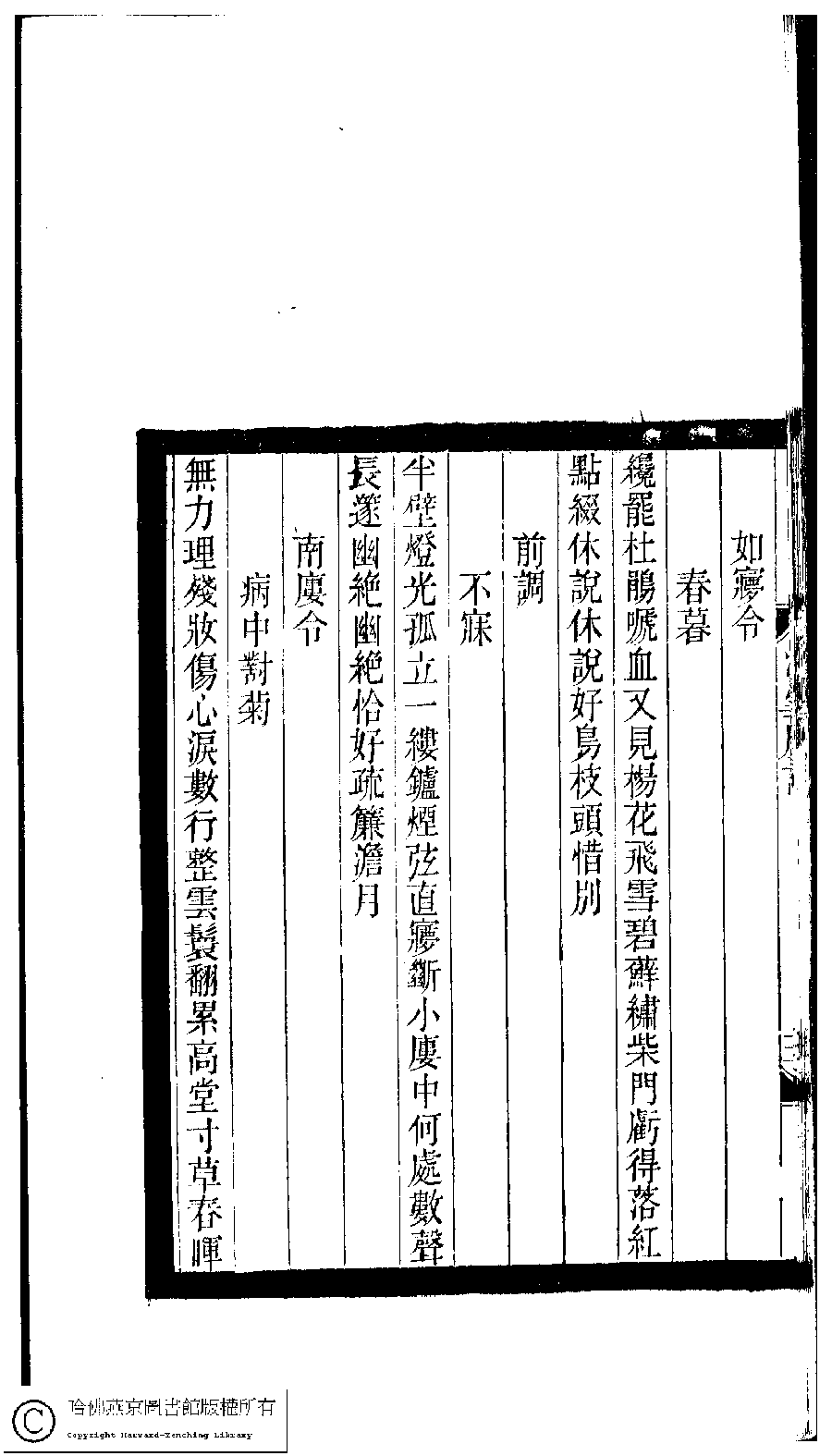 | Appears in: Xiao tan luan shi hui ke gui xiu ci: 10 ji 100 zhong 100 juan (edited by Xu Naichang, Qing dynasty): Hong xue lou ci: 1 juan |