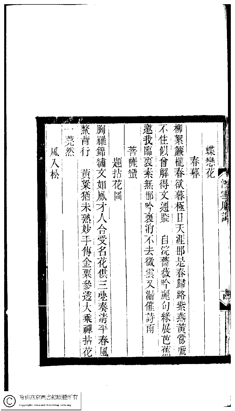 | Appears in: Xiao tan luan shi hui ke gui xiu ci: 10 ji 100 zhong 100 juan (edited by Xu Naichang, Qing dynasty): Hong xue lou ci: 1 juan |