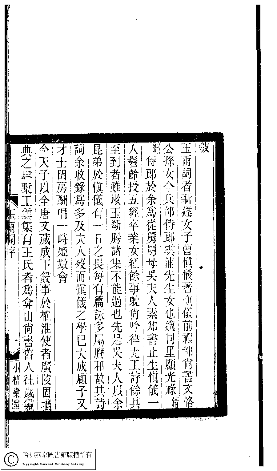 | (PRINT FRIENDLY VERSION) 小檀欒室彙刻閨秀詞﹕十集一百種一百卷(清徐乃昌輯) : 玉雨詞﹕一卷。清光緒二十二年(1896)南陵徐氏刻本。 ![]() Page : 玉雨詞序.1b | click for larger image | 小檀欒室彙刻閨秀詞﹕十集一百種一百卷(清徐乃昌輯) : 玉雨詞﹕一卷。清光緒二十二年(1896)南陵徐氏刻本。![]() Page : 玉雨詞序.1a | click for larger image | Back |
