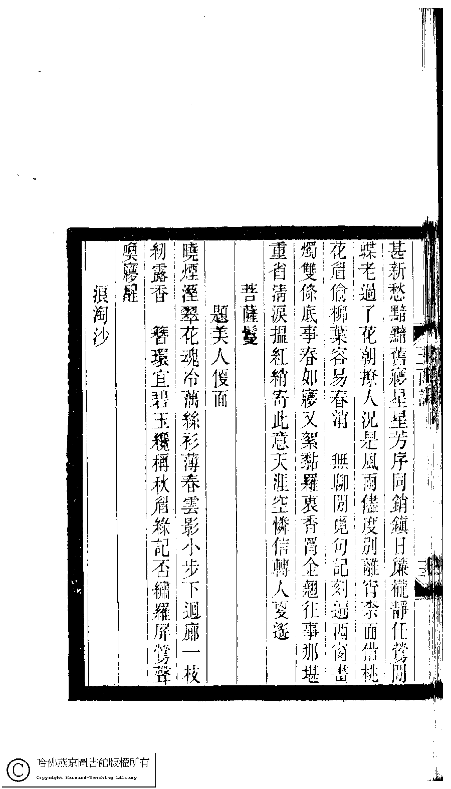 | (PRINT FRIENDLY VERSION) 小檀欒室彙刻閨秀詞﹕十集一百種一百卷(清徐乃昌輯) : 玉雨詞﹕一卷。清光緒二十二年(1896)南陵徐氏刻本。 ![]() Page : 玉雨詞.13b | click for larger image | Back |