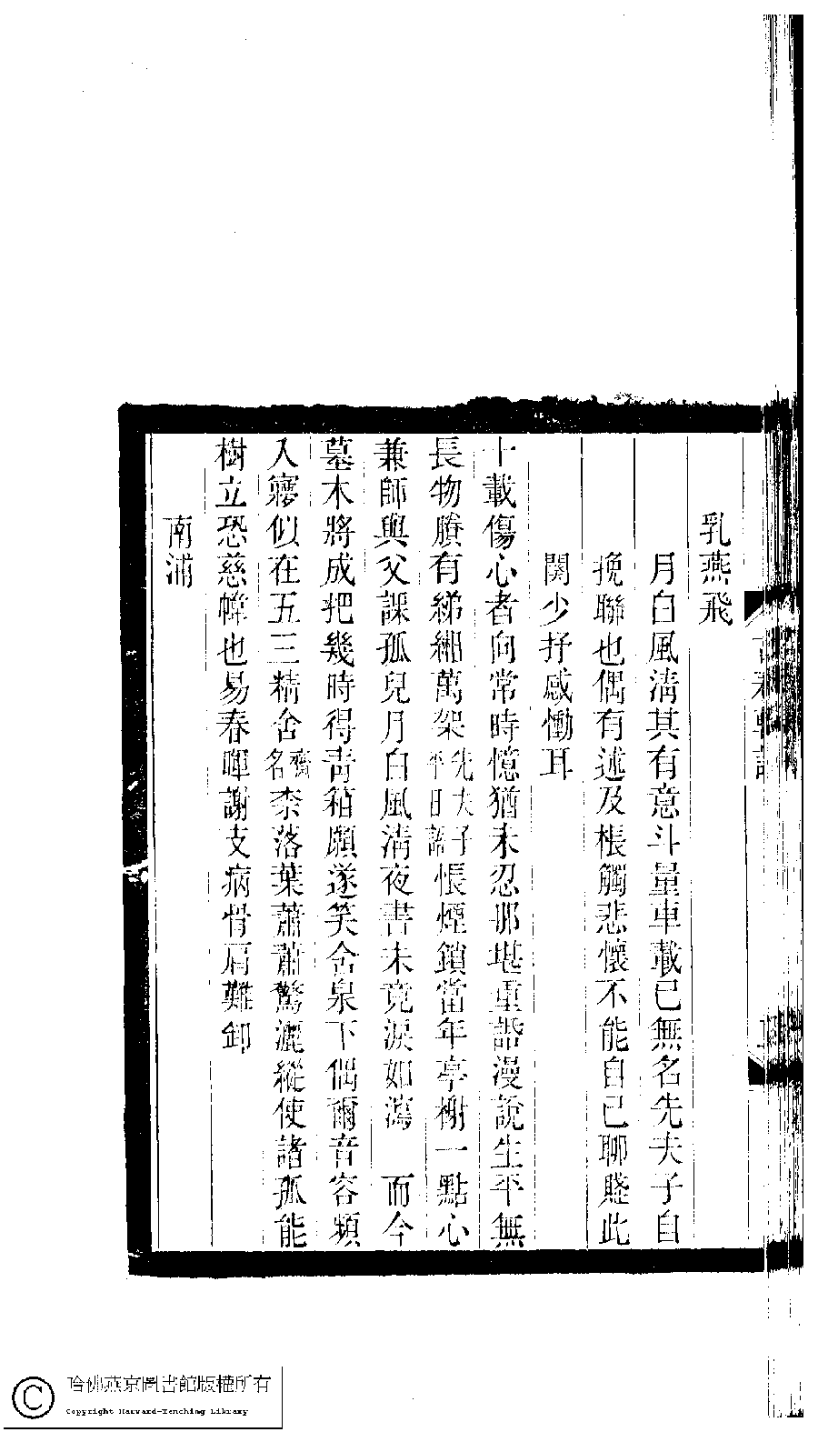 | (PRINT FRIENDLY VERSION) 小檀欒室彙刻閨秀詞﹕十集一百種一百卷(清徐乃昌輯) : 古春軒詞﹕一卷。清光緒二十二年(1896)南陵徐氏刻本。 ![]() Page : 古春軒詞.3a | click for larger image | 小檀欒室彙刻閨秀詞﹕十集一百種一百卷(清徐乃昌輯) : 古春軒詞﹕一卷。清光緒二十二年(1896)南陵徐氏刻本。![]() Page : 古春軒詞.2b | click for larger image | Back |
