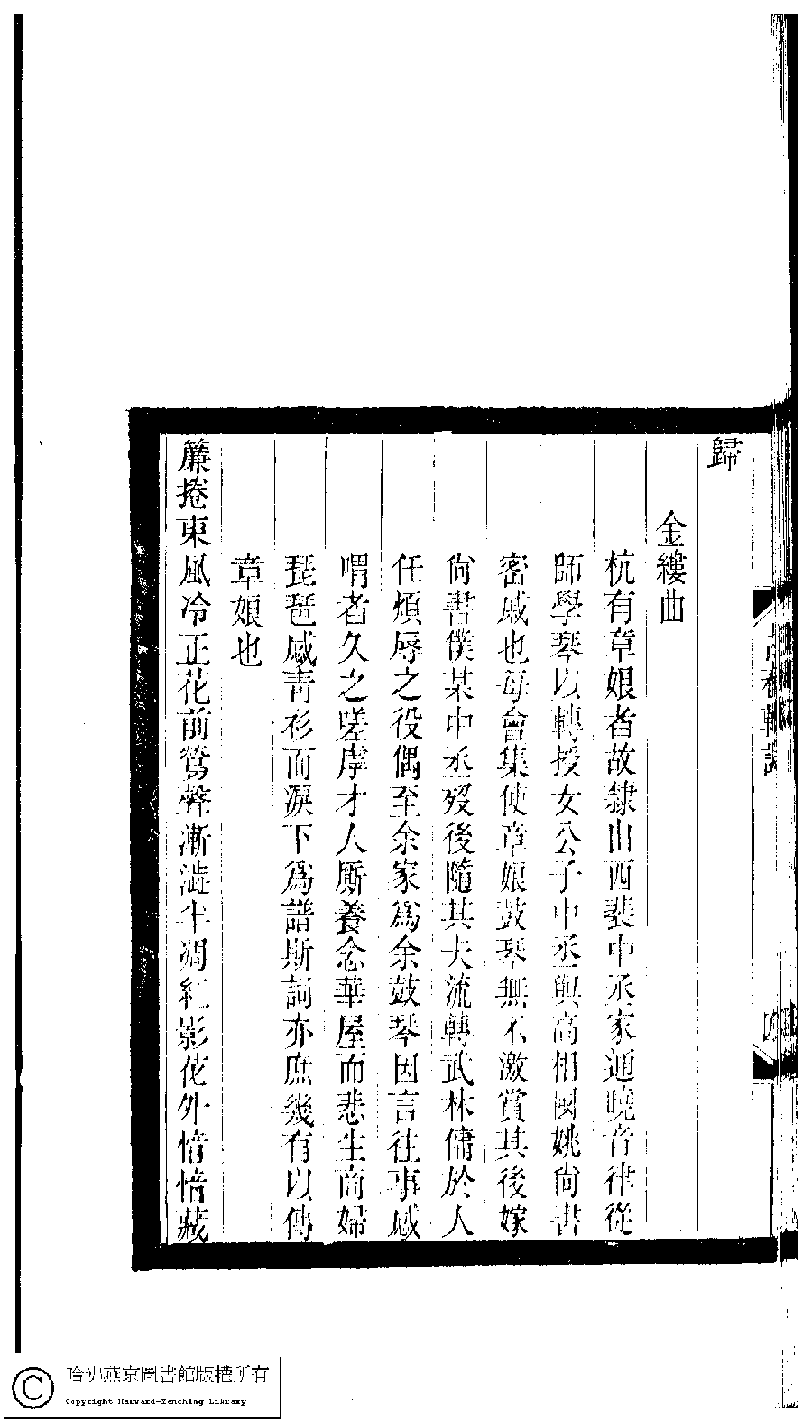 Poem [Jin lü qu : Hang you Zhang niang zhe gu li Shanxi Pei zhong cheng jia tong xiao yin lü cong shi xue qin yi zhuan tou nü gong zi zhong cheng yu Gao xiang guo Yao shang shu mi qi ye mei hui ji shi Zhang niang gu qin wu bu ji shang qi hou jia shang shu pu mou zhong...]