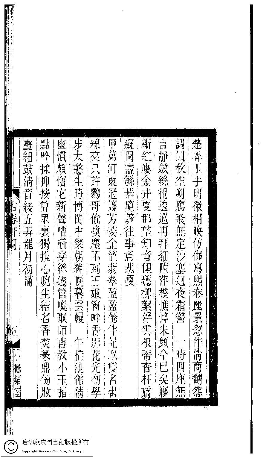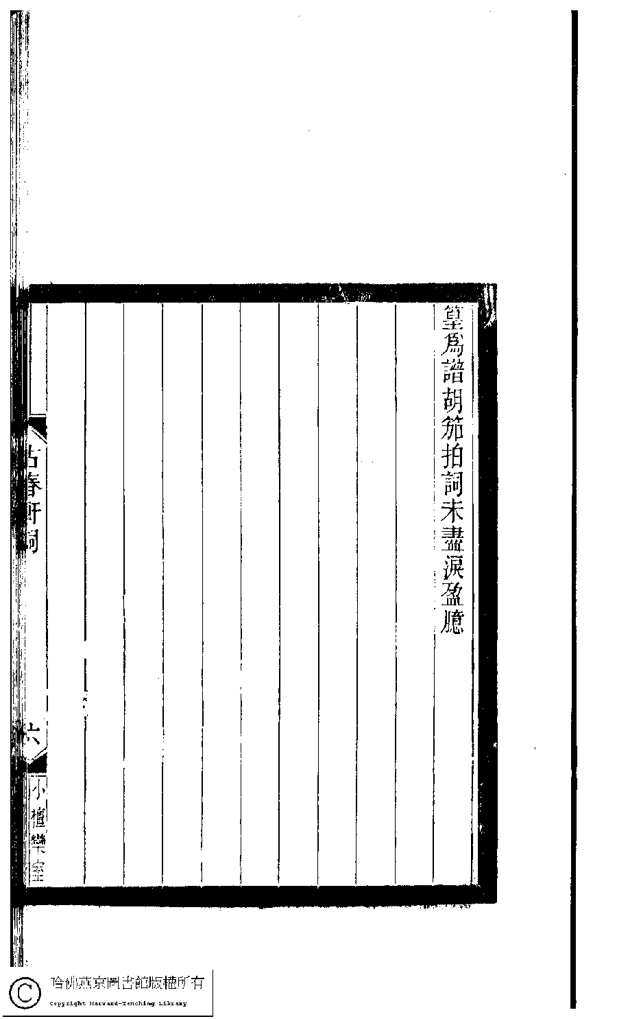 | (PRINT FRIENDLY VERSION) 小檀欒室彙刻閨秀詞﹕十集一百種一百卷(清徐乃昌輯) : 古春軒詞﹕一卷。清光緒二十二年(1896)南陵徐氏刻本。 ![]() Page : 古春軒詞.6a | click for larger image | 小檀欒室彙刻閨秀詞﹕十集一百種一百卷(清徐乃昌輯) : 古春軒詞﹕一卷。清光緒二十二年(1896)南陵徐氏刻本。![]() Page : 古春軒詞.5b | click for larger image | 小檀欒室彙刻閨秀詞﹕十集一百種一百卷(清徐乃昌輯) : 古春軒詞﹕一卷。清光緒二十二年(1896)南陵徐氏刻本。![]() Page : 古春軒詞.5a | click for larger image | 小檀欒室彙刻閨秀詞﹕十集一百種一百卷(清徐乃昌輯) : 古春軒詞﹕一卷。清光緒二十二年(1896)南陵徐氏刻本。![]() Page : 古春軒詞.4b | click for larger image | Back |