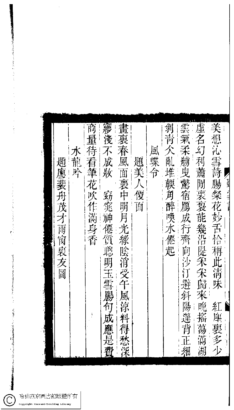 | (PRINT FRIENDLY VERSION) 小檀欒室彙刻閨秀詞﹕十集一百種一百卷(清徐乃昌輯) : 聽雪詞﹕一卷。清光緒二十二年(1896)南陵徐氏刻本。 ![]() Page : 聽雪詞.5a | click for larger image | 小檀欒室彙刻閨秀詞﹕十集一百種一百卷(清徐乃昌輯) : 聽雪詞﹕一卷。清光緒二十二年(1896)南陵徐氏刻本。![]() Page : 聽雪詞.4b | click for larger image | Back |