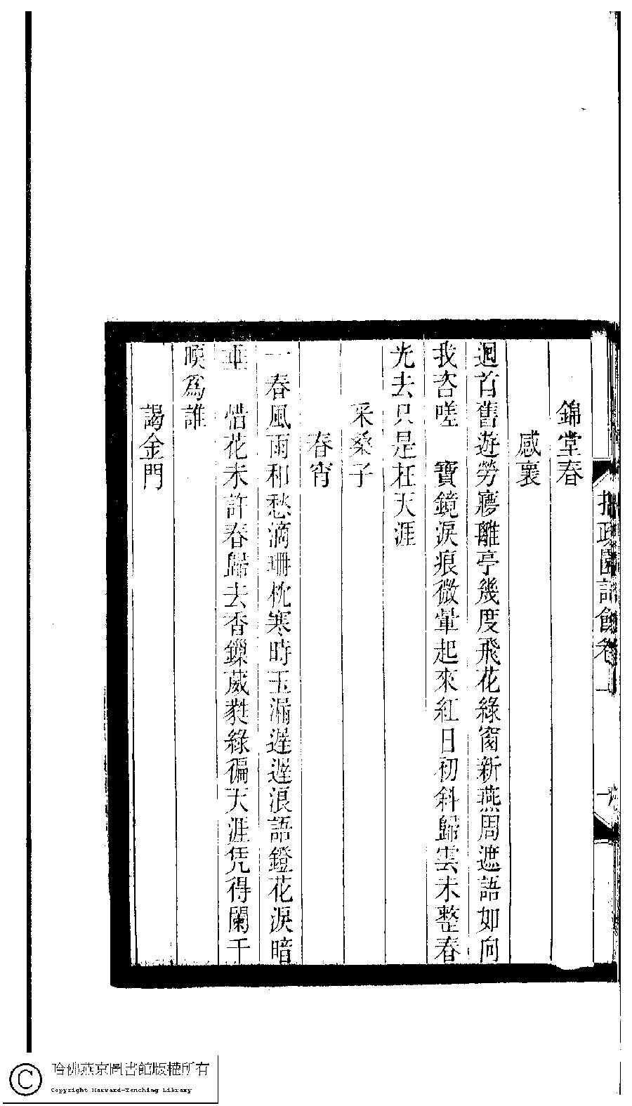 | (PRINT FRIENDLY VERSION) 小檀欒室彙刻閨秀詞﹕十集一百種一百卷(清徐乃昌輯) : 拙政園詩餘﹕三卷。清光緒二十二年(1896)南陵徐氏刻本。 ![]() Page : 卷上.10b | click for larger image | Back |