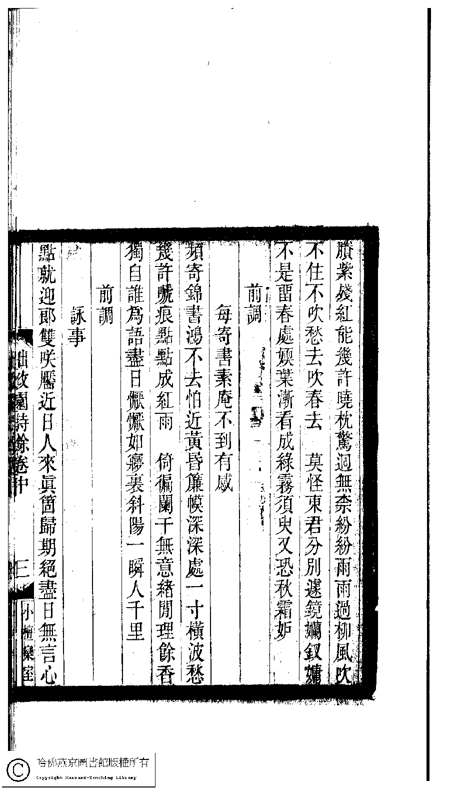 | (PRINT FRIENDLY VERSION) 小檀欒室彙刻閨秀詞﹕十集一百種一百卷(清徐乃昌輯) : 拙政園詩餘﹕三卷。清光緒二十二年(1896)南陵徐氏刻本。 ![]() Page : 卷中.3a | click for larger image | Back |
