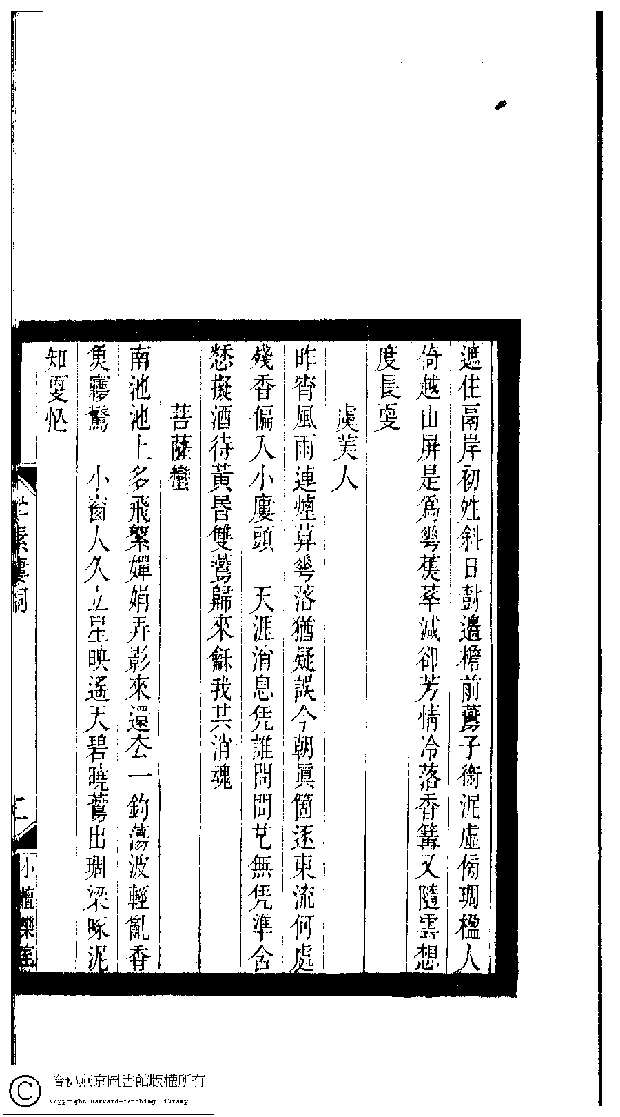 | Appears in: Xiao tan luan shi hui ke gui xiu ci: 10 ji 100 zhong 100 juan (edited by Xu Naichang, Qing dynasty): Zhu su lou ci: 1 juan |