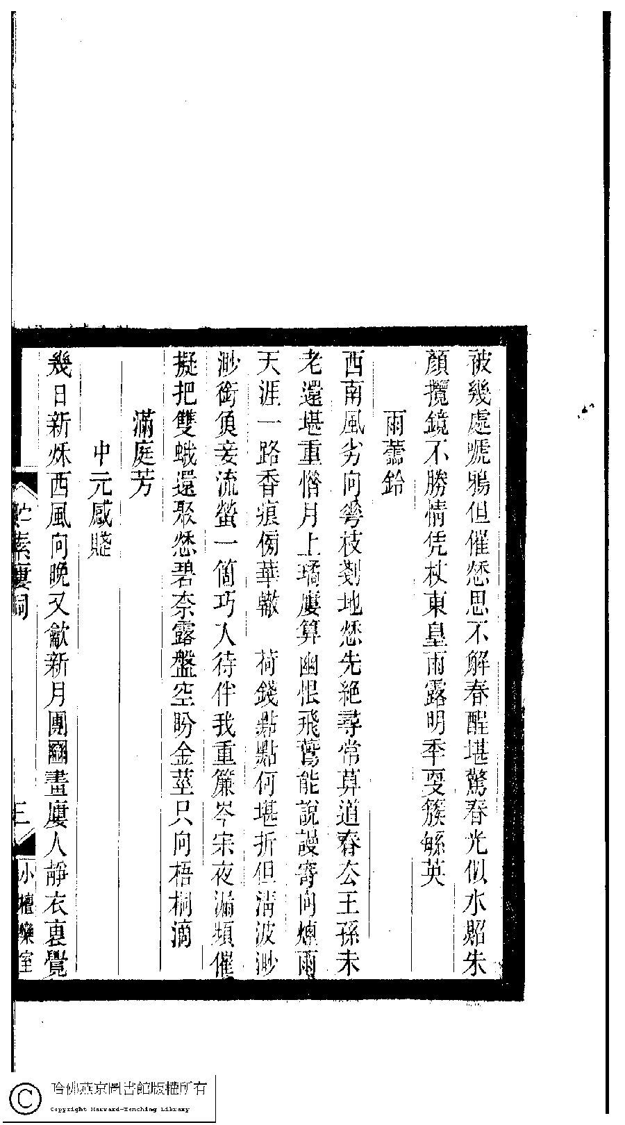 | (PRINT FRIENDLY VERSION) 小檀欒室彙刻閨秀詞﹕十集一百種一百卷(清徐乃昌輯) : 貯素樓詞﹕一卷。清光緒二十二年(1896)南陵徐氏刻本。 ![]() Page : 貯素樓詞.3a | click for larger image | Back |