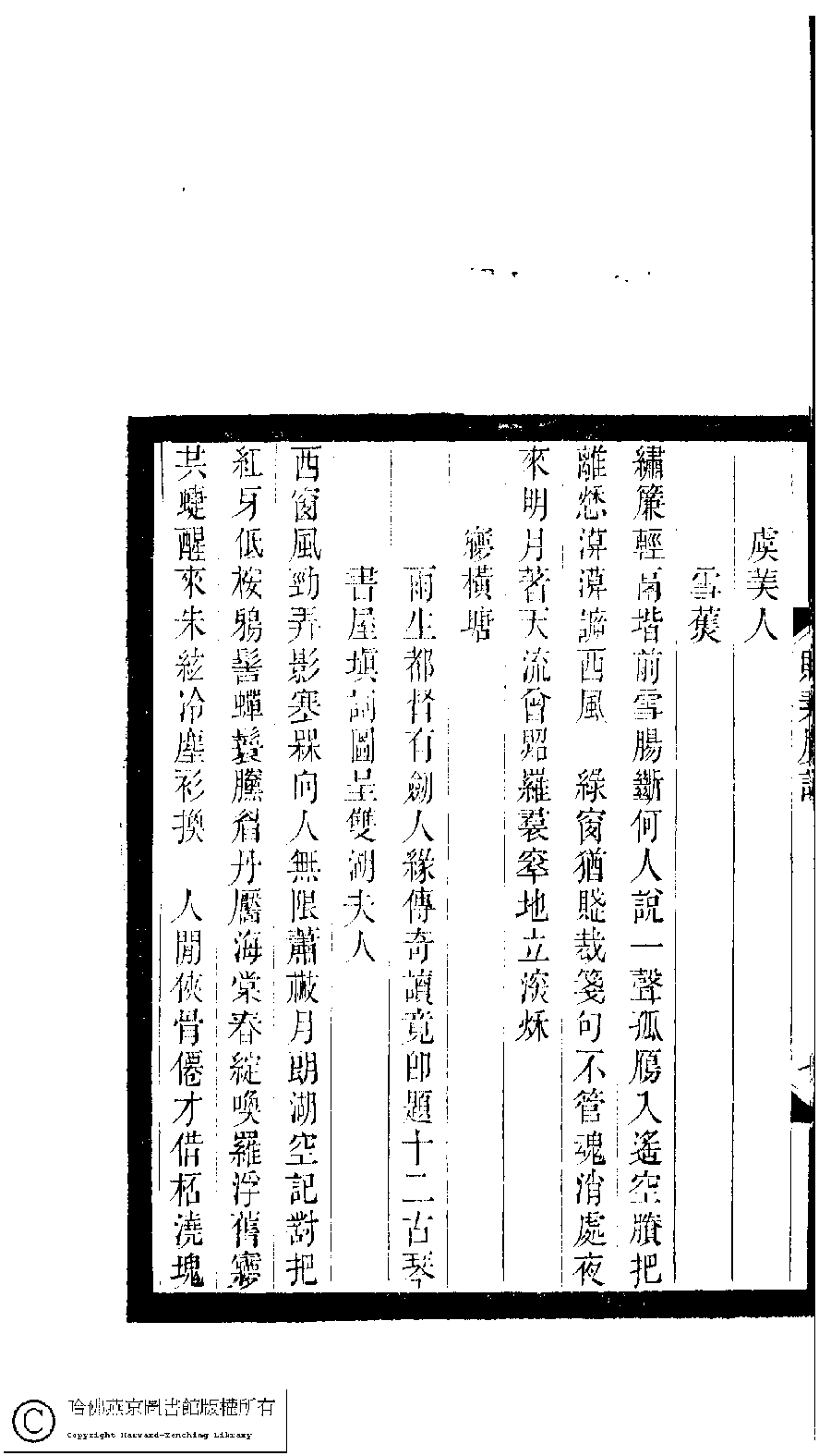 | (PRINT FRIENDLY VERSION) 小檀欒室彙刻閨秀詞﹕十集一百種一百卷(清徐乃昌輯) : 貯素樓詞﹕一卷。清光緒二十二年(1896)南陵徐氏刻本。 ![]() Page : 貯素樓詞.7b | click for larger image | Back |