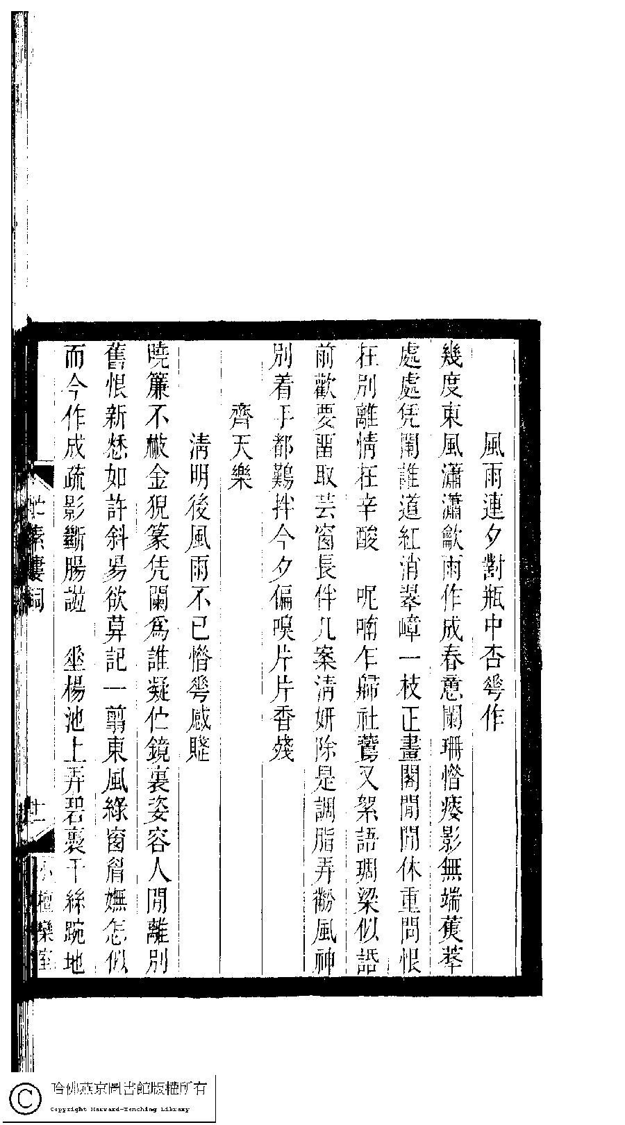Poem [Qi tian le : Qing ming hou feng yu bu yi xi hua gan fu]