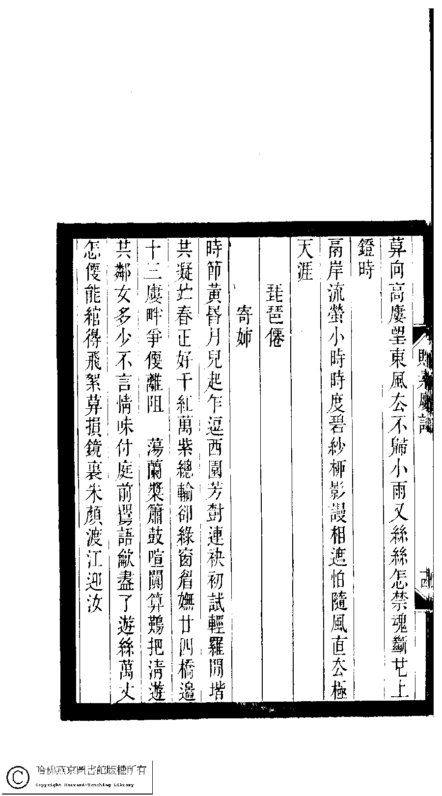 | (PRINT FRIENDLY VERSION) 小檀欒室彙刻閨秀詞﹕十集一百種一百卷(清徐乃昌輯) : 貯素樓詞﹕一卷。清光緒二十二年(1896)南陵徐氏刻本。 ![]() Page : 貯素樓詞.14b | click for larger image | Back |