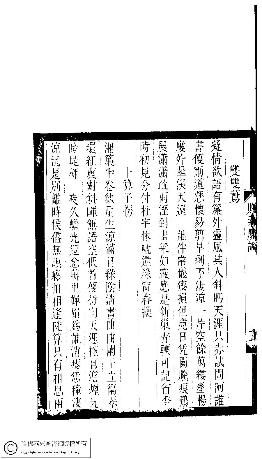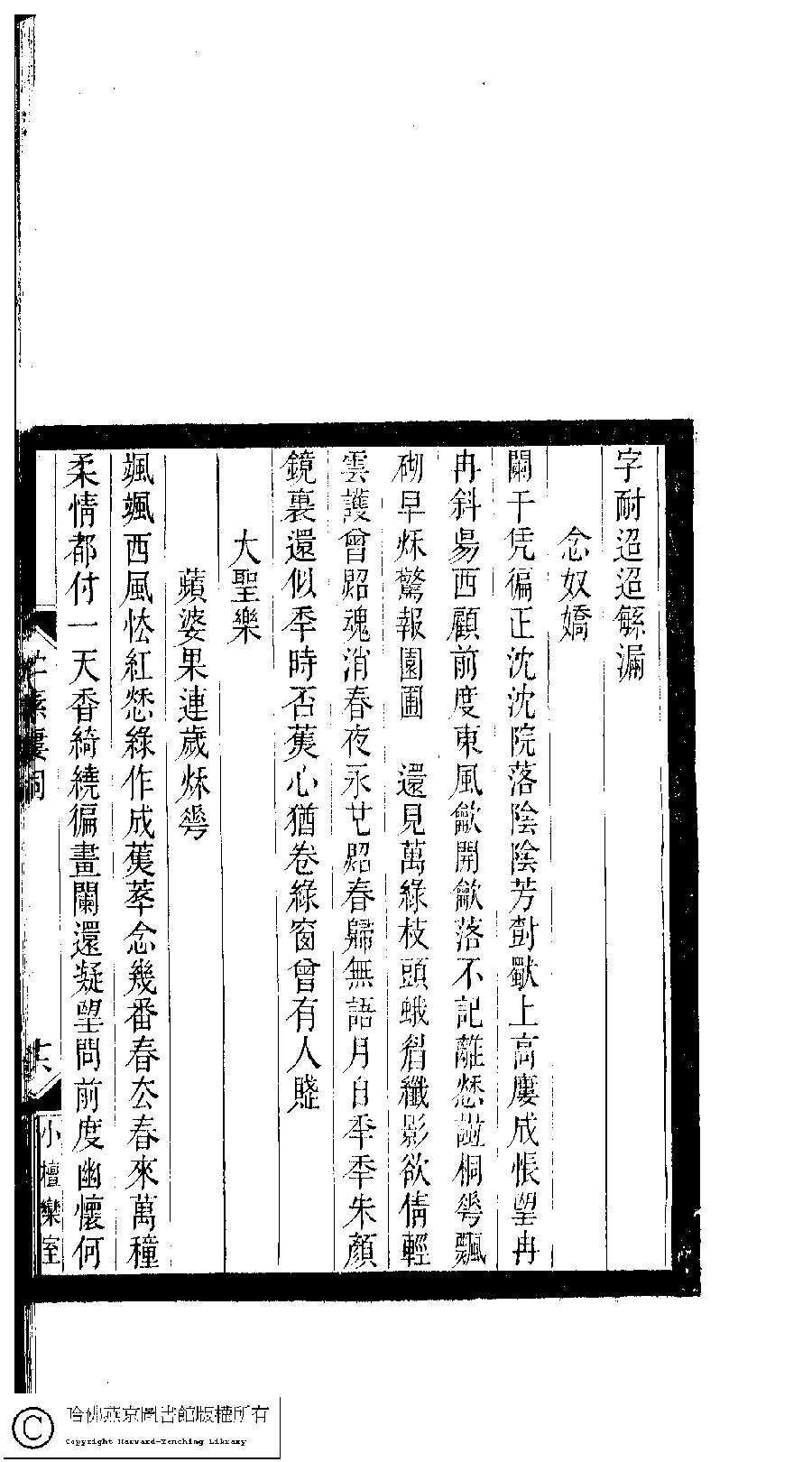 | (PRINT FRIENDLY VERSION) 小檀欒室彙刻閨秀詞﹕十集一百種一百卷(清徐乃昌輯) : 貯素樓詞﹕一卷。清光緒二十二年(1896)南陵徐氏刻本。 ![]() Page : 貯素樓詞.16a | click for larger image | 小檀欒室彙刻閨秀詞﹕十集一百種一百卷(清徐乃昌輯) : 貯素樓詞﹕一卷。清光緒二十二年(1896)南陵徐氏刻本。![]() Page : 貯素樓詞.15b | click for larger image | Back |