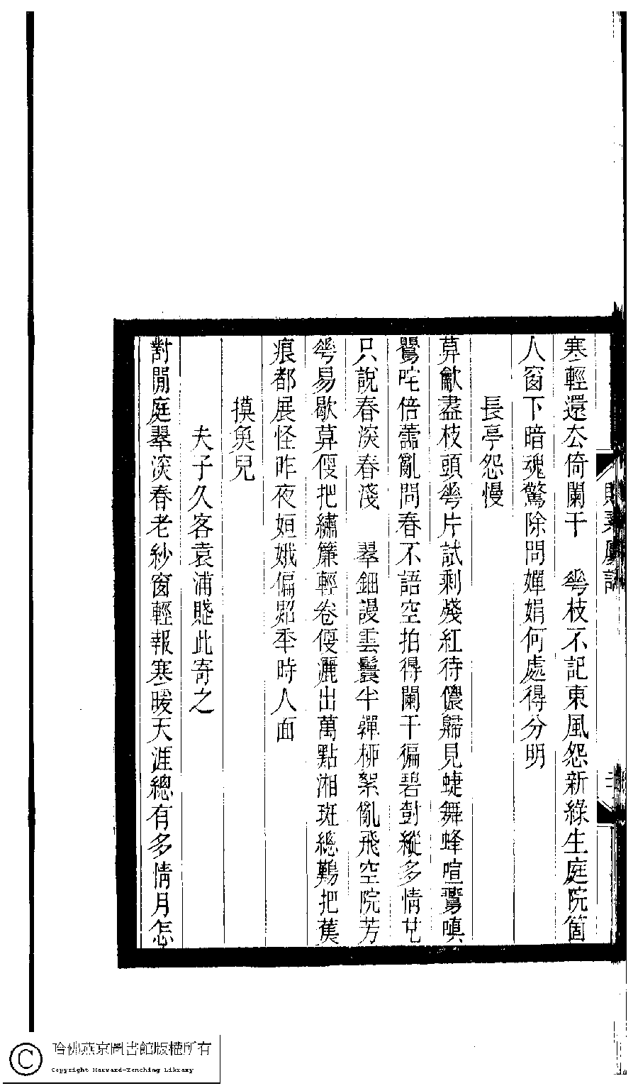 | (PRINT FRIENDLY VERSION) 小檀欒室彙刻閨秀詞﹕十集一百種一百卷(清徐乃昌輯) : 貯素樓詞﹕一卷。清光緒二十二年(1896)南陵徐氏刻本。 ![]() Page : 貯素樓詞.21a | click for larger image | 小檀欒室彙刻閨秀詞﹕十集一百種一百卷(清徐乃昌輯) : 貯素樓詞﹕一卷。清光緒二十二年(1896)南陵徐氏刻本。![]() Page : 貯素樓詞.20b | click for larger image | Back |