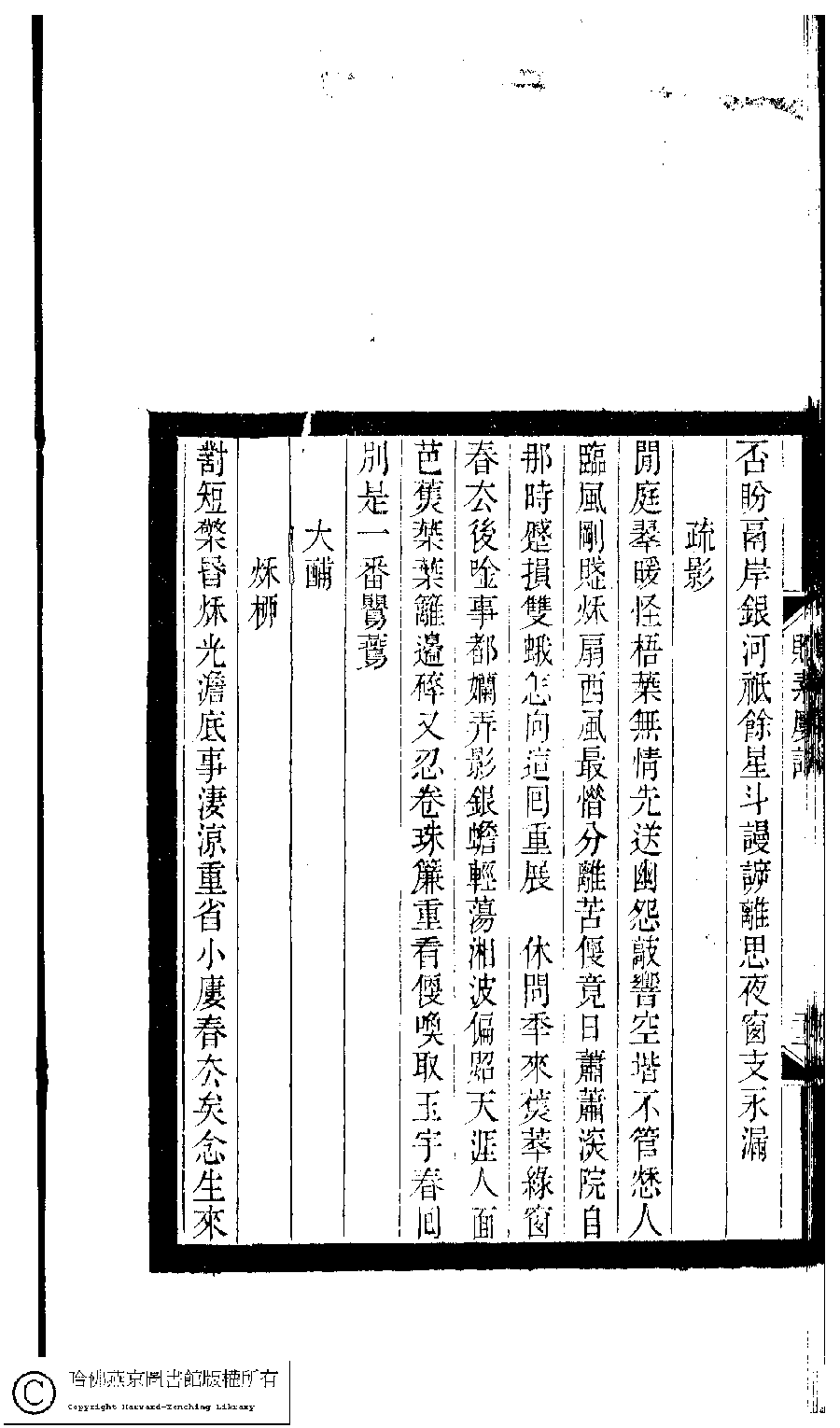 | (PRINT FRIENDLY VERSION) 小檀欒室彙刻閨秀詞﹕十集一百種一百卷(清徐乃昌輯) : 貯素樓詞﹕一卷。清光緒二十二年(1896)南陵徐氏刻本。 ![]() Page : 貯素樓詞.22b | click for larger image | 小檀欒室彙刻閨秀詞﹕十集一百種一百卷(清徐乃昌輯) : 貯素樓詞﹕一卷。清光緒二十二年(1896)南陵徐氏刻本。![]() Page : 貯素樓詞.22a | click for larger image | Back |