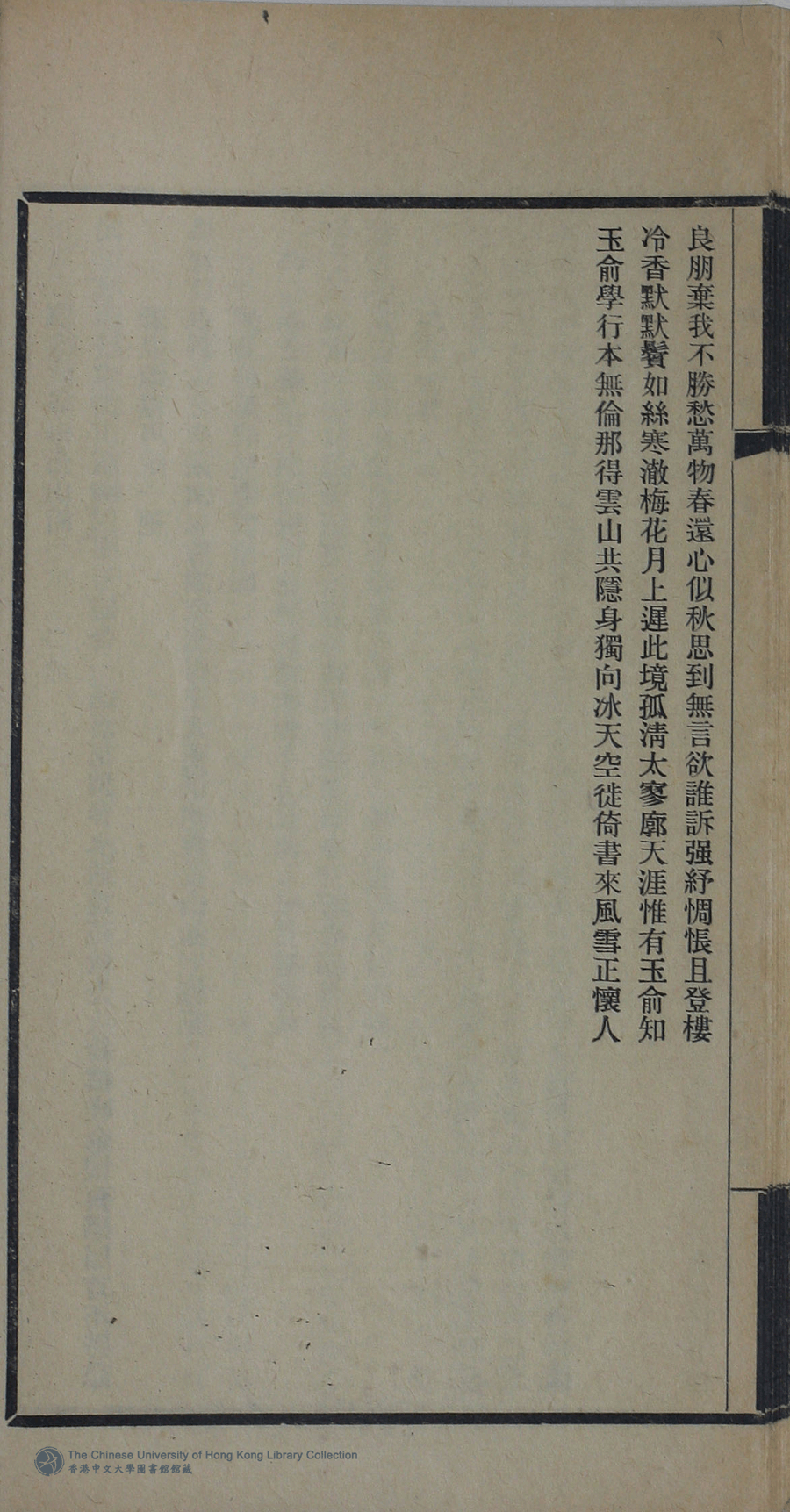 | (PRINT FRIENDLY VERSION) 滄海歸來集:詩十一卷,詞一卷,續集一卷,餘卷二卷,消愁吟二卷,文一卷(清姚倚雲撰)。民國三十三年(1944)或其後排印本 ![]() Page : 詩7.23b | click for larger image | 滄海歸來集:詩十一卷,詞一卷,續集一卷,餘卷二卷,消愁吟二卷,文一卷(清姚倚雲撰)。民國三十三年(1944)或其後排印本![]() Page : 詩7.23a | click for larger image | Back |