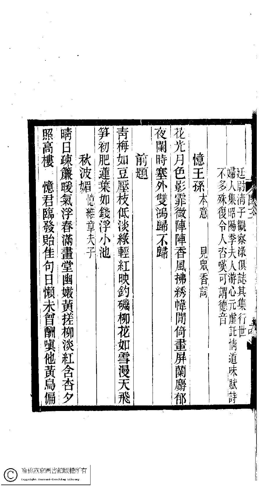 | (PRINT FRIENDLY VERSION) 閨秀詞鈔﹕十六卷(清徐乃昌輯)。清宣統元年(1909)小檀欒室刻本。 ![]() Page : 3.14b | click for larger image | 閨秀詞鈔﹕十六卷(清徐乃昌輯)。清宣統元年(1909)小檀欒室刻本。![]() Page : 3.14a | click for larger image | 閨秀詞鈔﹕十六卷(清徐乃昌輯)。清宣統元年(1909)小檀欒室刻本。![]() Page : 3.13b | click for larger image | Back |