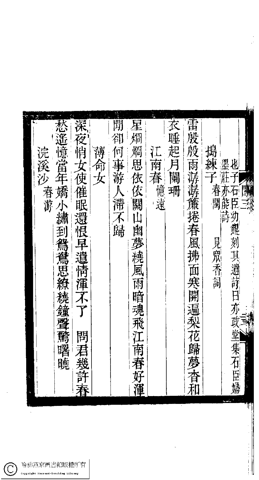 | (PRINT FRIENDLY VERSION) 閨秀詞鈔﹕十六卷(清徐乃昌輯)。清宣統元年(1909)小檀欒室刻本。 ![]() Page : 3.23b | click for larger image | 閨秀詞鈔﹕十六卷(清徐乃昌輯)。清宣統元年(1909)小檀欒室刻本。![]() Page : 3.23a | click for larger image | 閨秀詞鈔﹕十六卷(清徐乃昌輯)。清宣統元年(1909)小檀欒室刻本。![]() Page : 3.22b | click for larger image | Back |