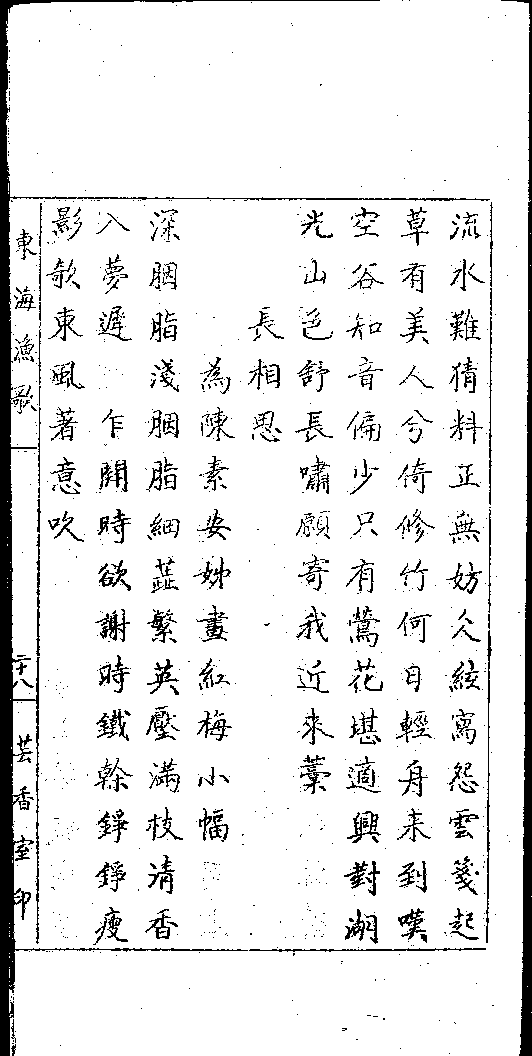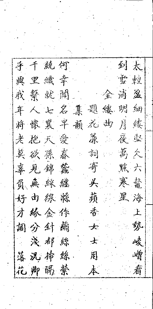 Poem [Jin lü qu : Ti Hua lian ci ji Wu Pingxiang nü shi yong ben ji yun]