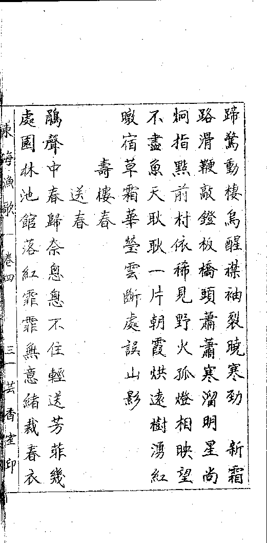 Poem [Diao qiu huan jiu : Ti shan tou Ji sheng mao dian yue ren ji ban qiao shuang hua yi]