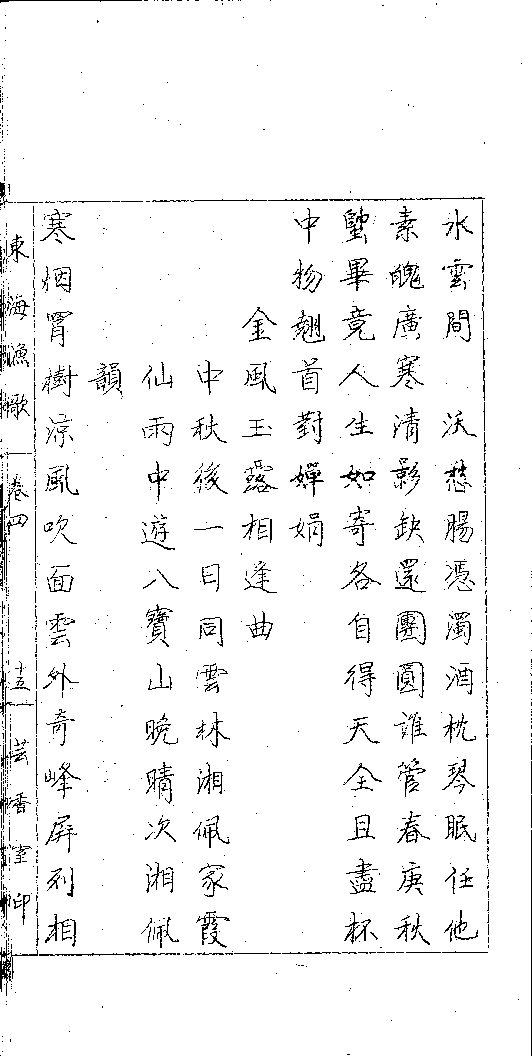 Poem [Jin feng yu lu xiang feng qu : Zhong qiu hou yi ri tong Yunlin Xiangpei jia Xiaxian yu zhong you Babao Shan wan qing ci Xiangpei yun]