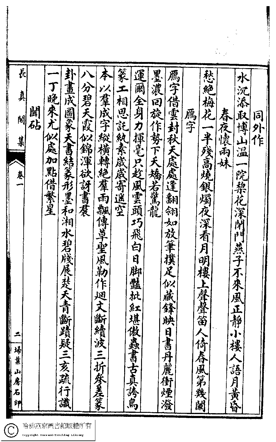 | Appears in: Chang zhen ge ji: 7 juan, shi yu 1 juan (by Xi Peilan, Qing dynasty) |