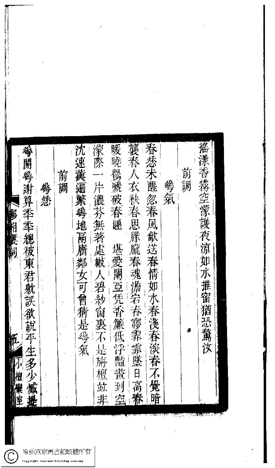 | Appears in: Xiao tan luan shi hui ke gui xiu ci: 10 ji 100 zhong 100 juan (edited by Xu Naichang, Qing dynasty): Meng xiang lou ci: 1 juan |