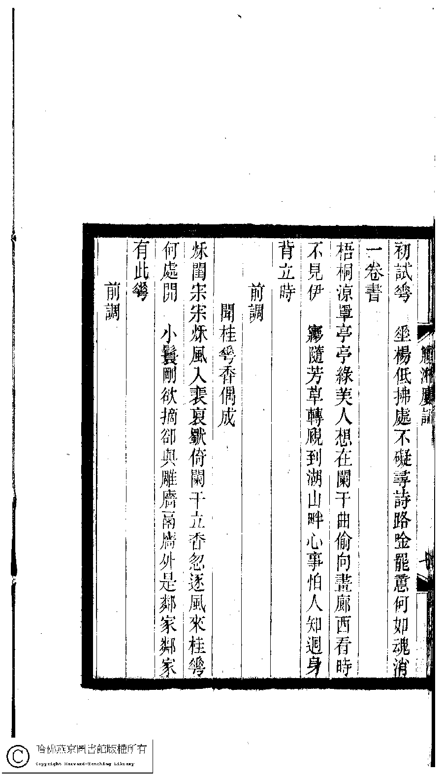 | (PRINT FRIENDLY VERSION) 小檀欒室彙刻閨秀詞﹕十集一百種一百卷(清徐乃昌輯) : 夢湘樓詞﹕一卷。清光緒二十二年(1896)南陵徐氏刻本。 ![]() Page : 夢湘樓詞.8a | click for larger image | 小檀欒室彙刻閨秀詞﹕十集一百種一百卷(清徐乃昌輯) : 夢湘樓詞﹕一卷。清光緒二十二年(1896)南陵徐氏刻本。![]() Page : 夢湘樓詞.7b | click for larger image | Back |