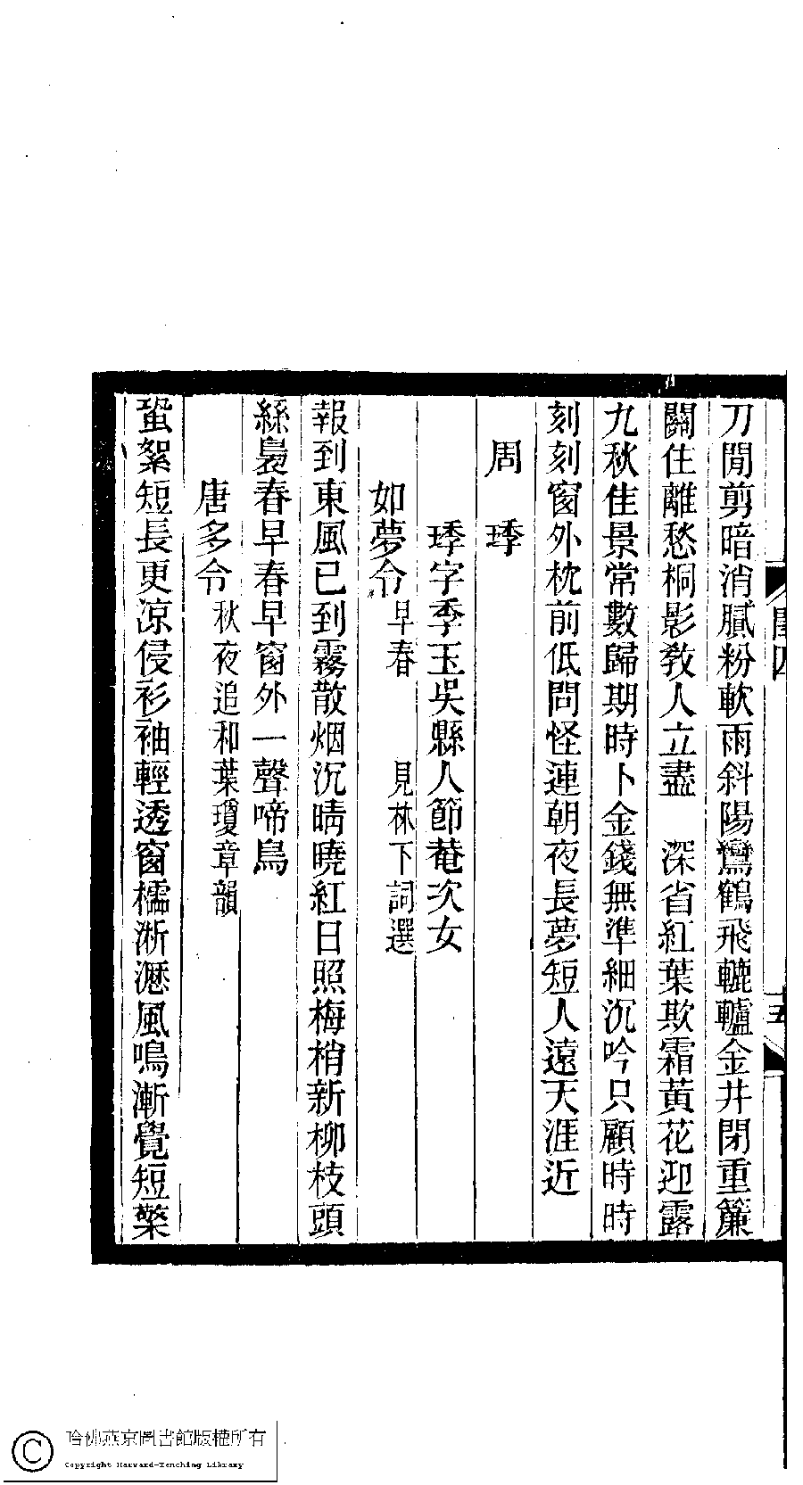 | (PRINT FRIENDLY VERSION) 閨秀詞鈔﹕十六卷(清徐乃昌輯)。清宣統元年(1909)小檀欒室刻本。 ![]() Page : 4.15b | click for larger image | Back |