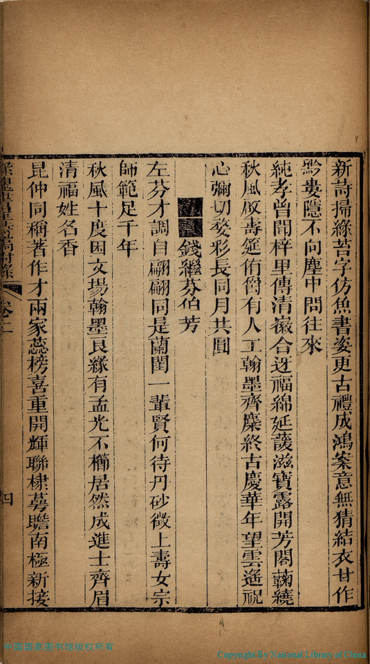 | (PRINT FRIENDLY VERSION) 陽湖張氏四女集(清張曜孫輯) : 綠槐書屋詩附錄:五卷 (清張曜孫輯)。清道光間(1821-1850)陽湖張氏宛鄰書屋刻本 ![]() Page : 附錄-2.4b | click for larger image | 陽湖張氏四女集(清張曜孫輯) : 綠槐書屋詩附錄:五卷 (清張曜孫輯)。清道光間(1821-1850)陽湖張氏宛鄰書屋刻本![]() Page : 附錄-2.4a | click for larger image | Back |