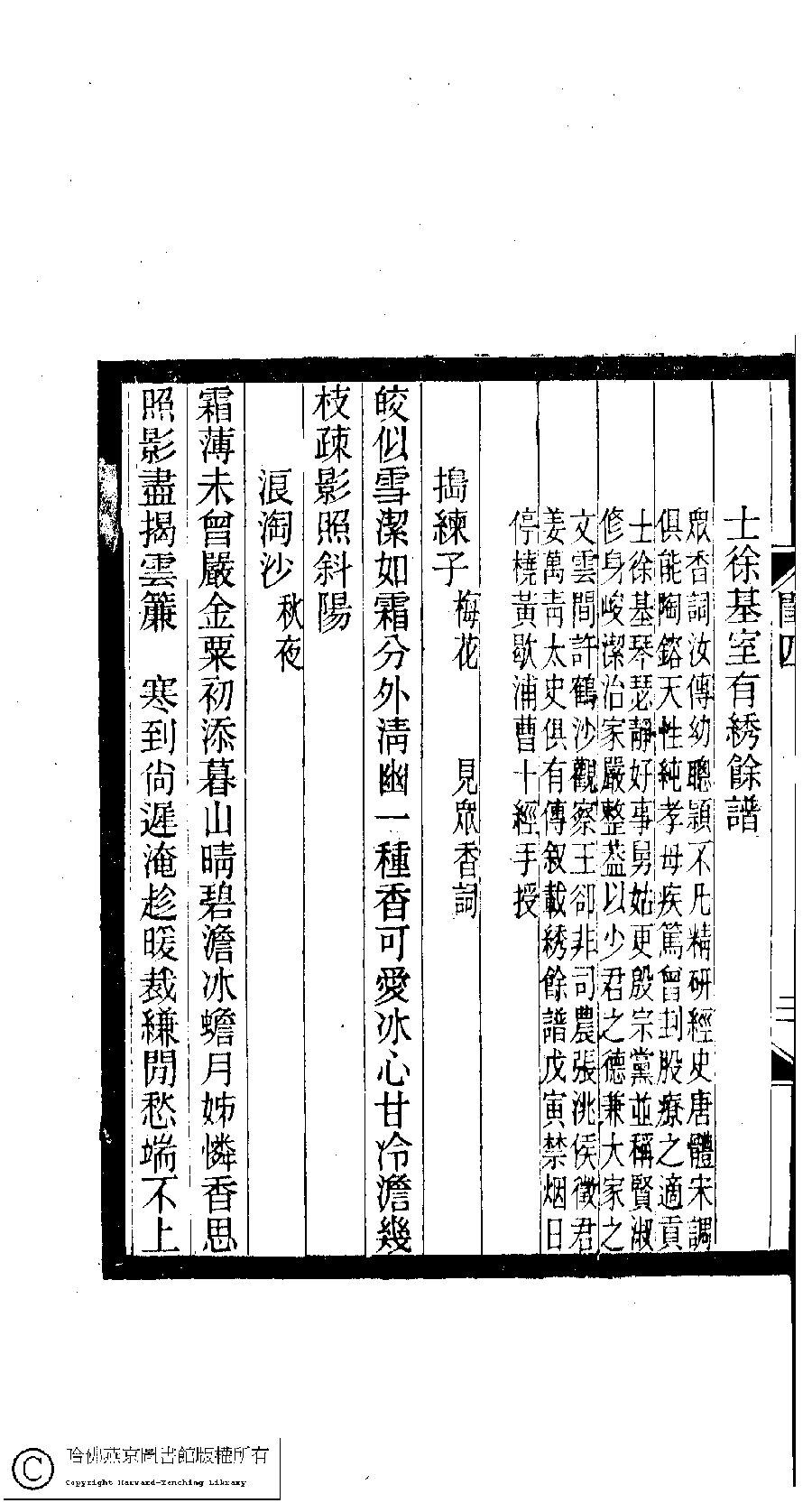 | (PRINT FRIENDLY VERSION) 閨秀詞鈔﹕十六卷(清徐乃昌輯)。清宣統元年(1909)小檀欒室刻本。 ![]() Page : 4.20b | click for larger image | 閨秀詞鈔﹕十六卷(清徐乃昌輯)。清宣統元年(1909)小檀欒室刻本。![]() Page : 4.20a | click for larger image | Back |