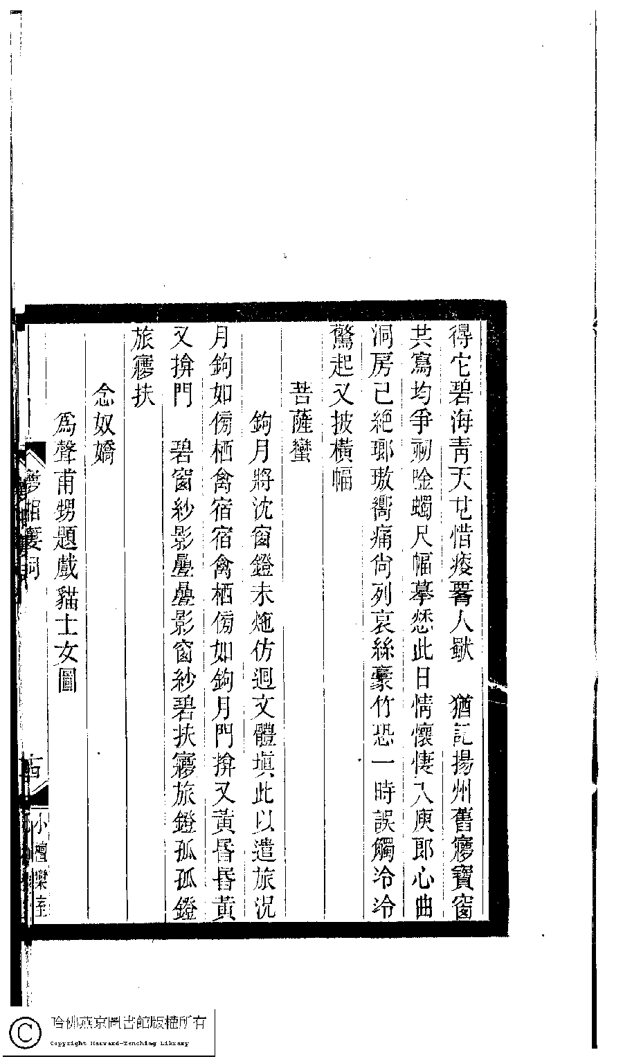 | Appears in: Xiao tan luan shi hui ke gui xiu ci: 10 ji 100 zhong 100 juan (edited by Xu Naichang, Qing dynasty): Meng xiang lou ci: 1 juan |